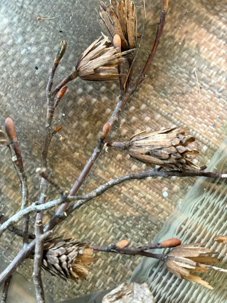 Poplar trees, also known as Tulip trees have the most interesting flowers. As the tulip flower dries it retains its shape and beauty especially the ones still clinging to the bare branches.
