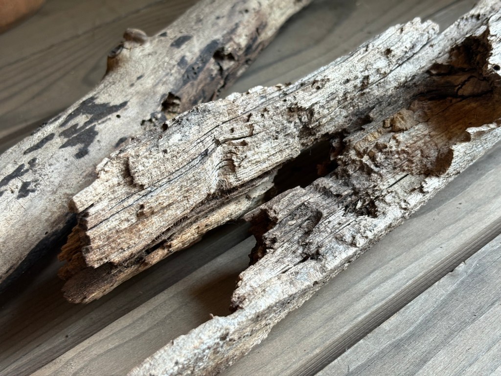 Gray weathered wood is another garden treasure, especially if they have holes in them. I love the character of these pieces.