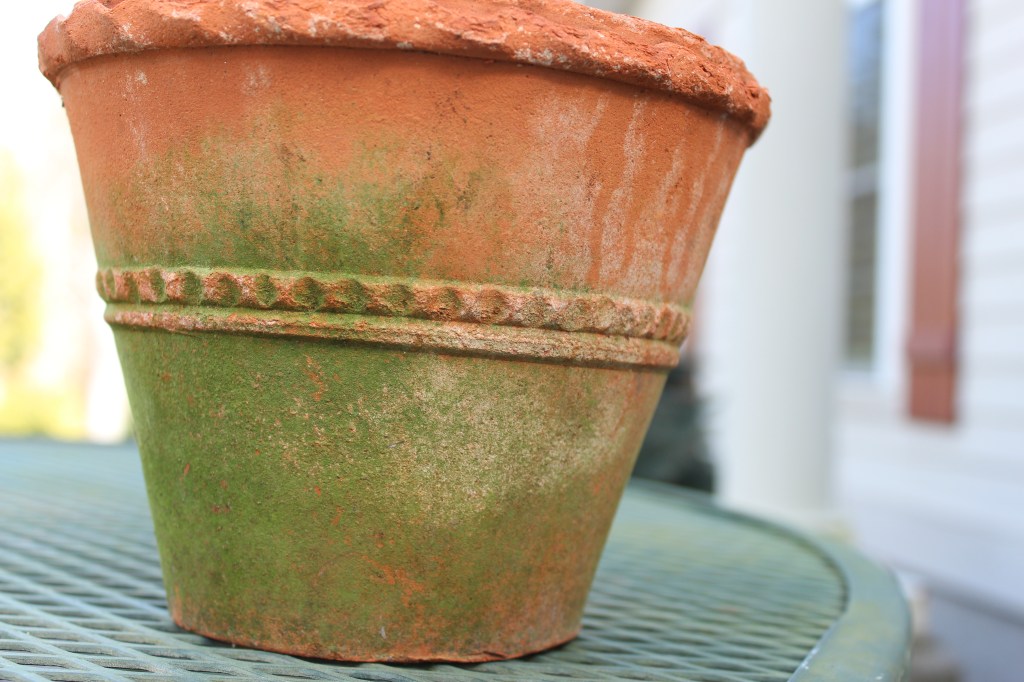 I have always appreciated objects that have a history. This clay pot is imperfect; worn on the edges, and covered with green algae. And because of that I cherish it.